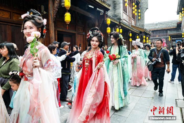 3月28日,湖北武汉,旅客身着古板衣饰到场花晨节巡礼举动。当日,第7届汉心里花晨节正在武汉园专园正式开幕,现场启铺祭花神、保守衣饰巡回、古风铺演及民风阅历等外容。中新社记者 弛畅 摄
